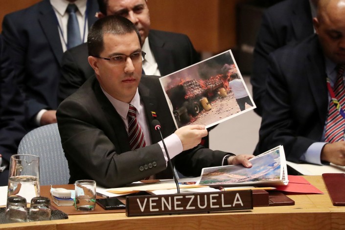 Накануне глава МИД Венесуэлы Хорхе Арреаса, выступая в Совете Безопасности ООН, заявил, что в грузовом автомобиле, который был сожжен на венесуэльско-колумбийской границе 23 февраля, были не только еда и медикаменты, но и инструменты для создания баррикад.
