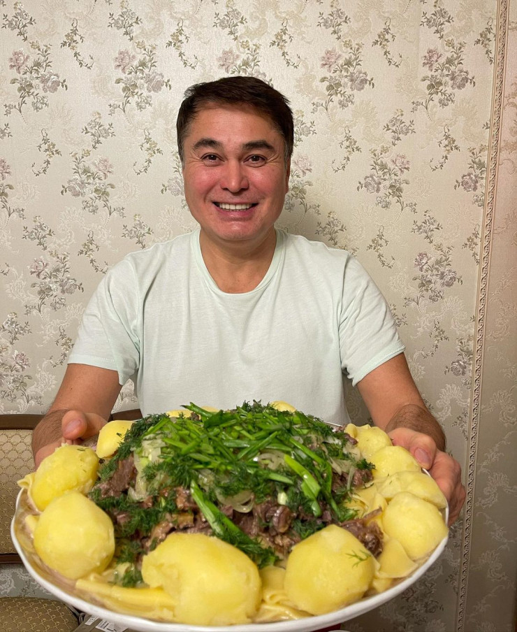 "Воскресный ужин в своем родном доме у моей любимой мамы! Прилетел на выходные, погостить и проведать. И конечно, как всегда мой любимый бешбармак!" - написал он под снимком.