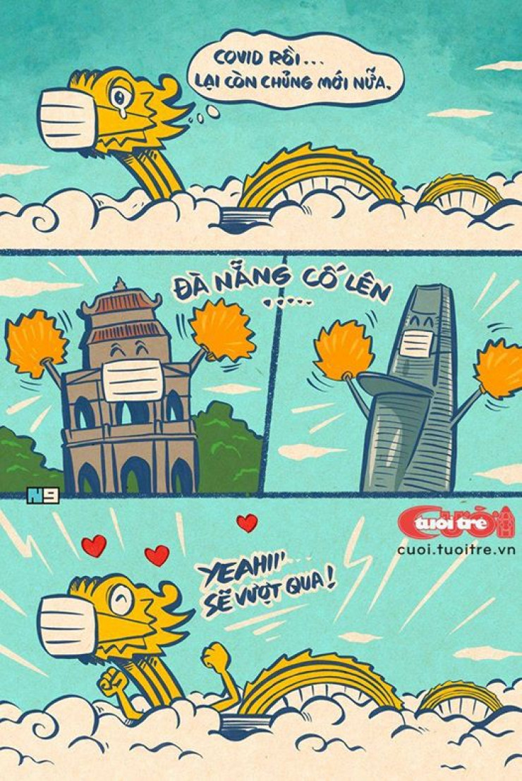 По его словам, сейчас вьетнамцы рисуют картинки и всячески оказывают моральную поддержку городу. Например, на одной из картинок дракон - символ Дананга - говорит, мол, вирус вернулся. А символы Ханоя и Сайгона вторят: "Дананг, будь сильным".