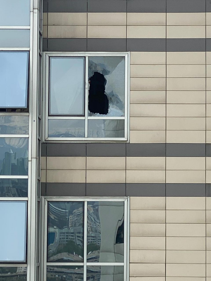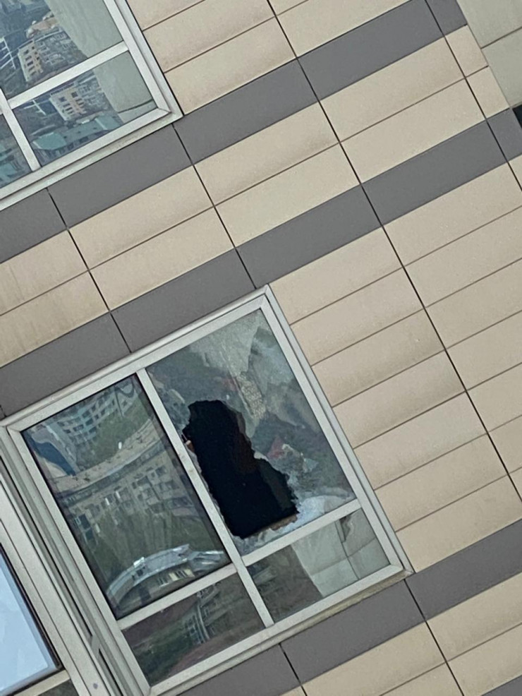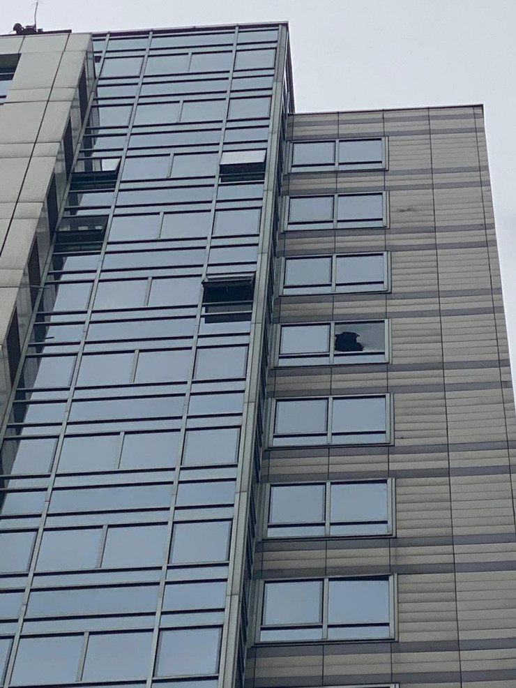 А так выглядит окно, которое накануне разбил мужчина, чтобы выпрыгнуть. Фото сделано из дома напротив.