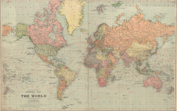 На популярном американском сайте Reddit опубликовали карту мира, сделанную в Лондоне в 1922 году, пишет Лента.Ру. Посмотреть ее в высоком разрешении можно здесь.