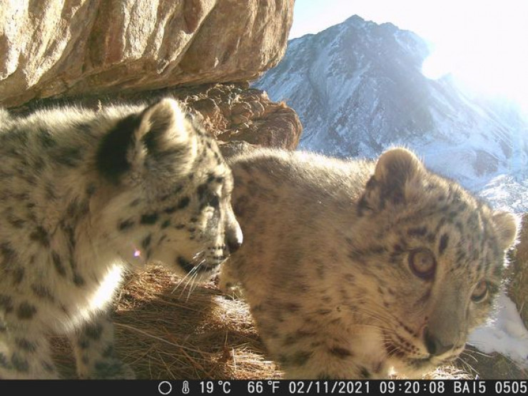 Резвящиеся снежные барсы попали на камеру в горах © facebook/baiboosun.naturereserve