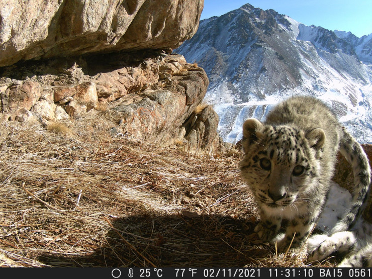 Детеныши снежного барса редко попадают на фотокамеры, поэтому экологи считают удачей возможность разглядеть через фото жизнь краснокнижных животных.