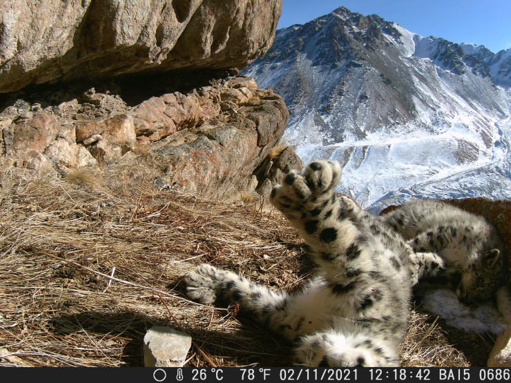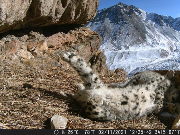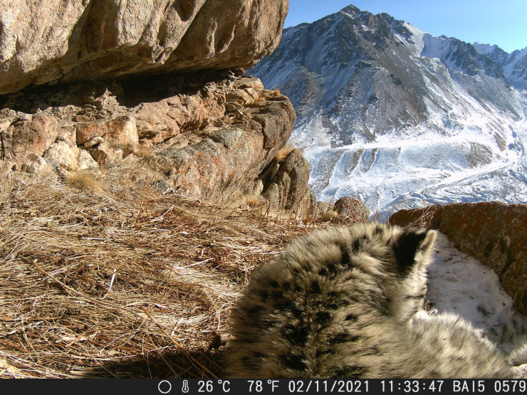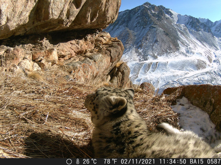 Установленная в соседнем ущелье фотоловушка весной этого года сняла другого снежного барса: