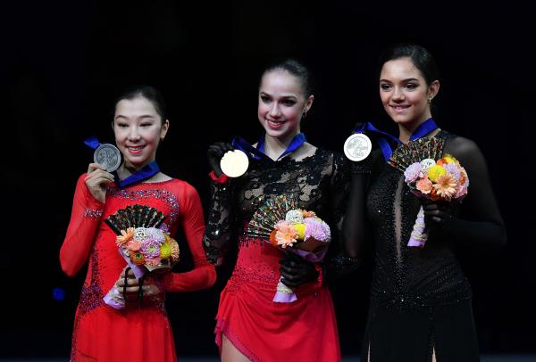 Элизабет Турсынбаева, Алина Загитова и Евгения Медведева. Фото ©РИА Новости
