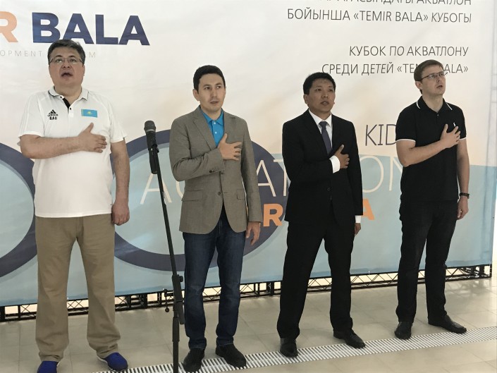 "Мы провели сегодня первый старт в рамках программы развития детского триатлона TEMIR BALA. Акватлон - это начало триатлона. При разработке данной программы мы опирались на международный опыт и консультировались с нашим прославленным чемпионом мира по триатлону Дмитрием Гаагом и нашими коллегами из Австралийской федерации триатлона, которые недавно посетили нашу столицу на Кубке мира по триатлону", - сказал генеральный секретарь Федерации Саят Батпенов.