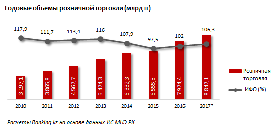 "После неблагоприятного кризисного 2015 года, когда розничные торговые компании ушли в минус на 2,5 процента (с учетом инфляции), ситуация определенно выправляется. По итогам 2016 года рост реальных объемов розничных продаж составил 2 процента, а в 2017 году подскочил сразу до 6,3 процента", - говорят аналитики.