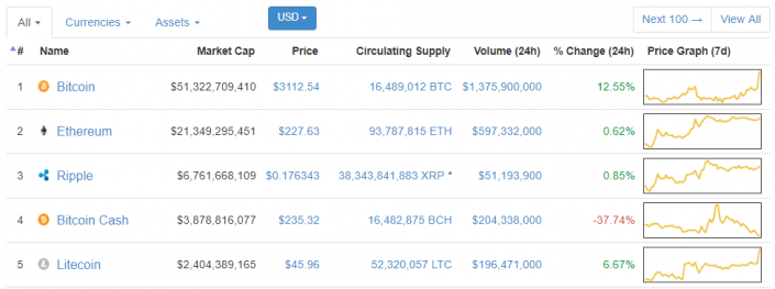 Утром 5 августа цена первой цифровой валюты на ряде бирж уверенно преодолела отметку в 3100 долларов, пишет ForkLog.
