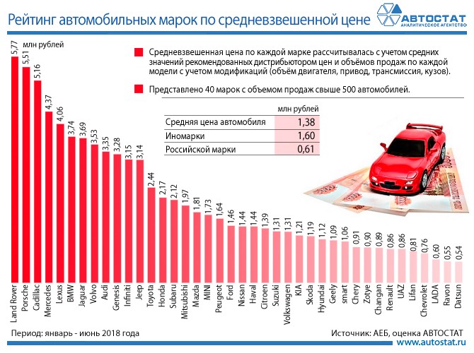 Во второй половине августа цены на новые легковые автомобили автопроизводителей, официально представленных на российском рынке, выросли от 3 до 350 тысяч рублей (от 16 тысяч до 1,8 миллиона тенге). Об этом сообщает аналитическое агентство "Автостат", которое провело мониторинг цен.