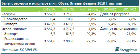 По итогам первого квартала текущего года казахстанские обувные компании произвели 145,3 тысячи пар обуви - на 16,8 процента меньше, чем в аналогичном периоде годом ранее.