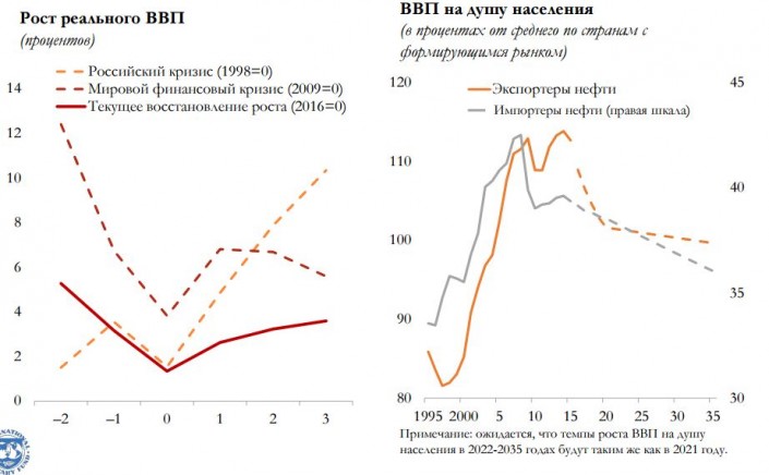 А для улучшения среднесрочных перспектив экономического роста, наращивания темпов создания рабочих мест и предотвращения падения уровня жизни экономисты фонда рекомендуют структурные преобразования, направленные на диверсификацию экономики с целью снижения зависимости от биржевых товаров и денежных переводов.