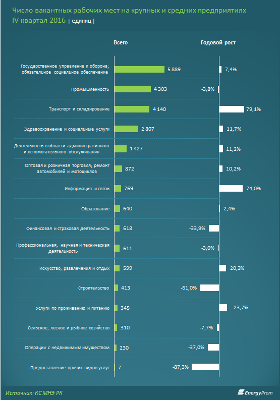 Согласно данным аналитиков, 22,2 процента всех вакансий приходится на столицу. Четверть вакантных мест приходится на госслужбу, еще 17,9 процента - на промышленную сферу.