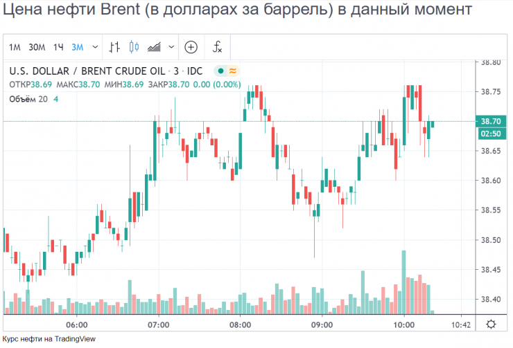 Сейчас цена на нефть составляет 38,7 доллара за баррель.
