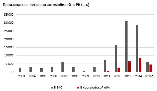Согласно данным, объем производства легковых пассажирских автомобилей за январь-ноябрь 2014 года составил 33 тысячи единиц. А за аналогичный период 2015 года эта цифра упала до 10,8 тысячи. Объясняется все тем, что во второй половине 2014 года на фоне снижения курса рубля резко ускорился рост числа легковых автомобилей, перевезенных из России.