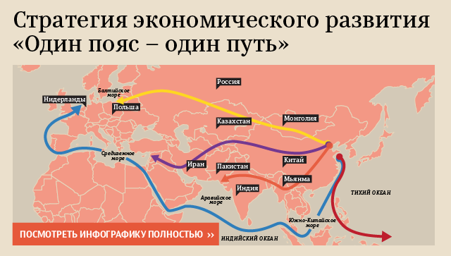 Цель новой инициативы - создать сеть автомобильных и железных дорог, морских путей и трубопроводов через Европу, Африку и Азию, которые соединят разные точки мира с Китаем. При этом в КНР будут поставляться сырье и энергоресурсы, а Пекин планирует экспортировать китайскую продукцию. Пока КНР заявила о заинтересованности 65 государств в проекте.