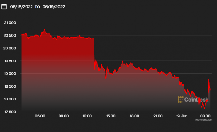 Курс биткоина продолжил падать, опустившись ниже 19 тысяч долларов. Последний раз такое наблюдалось в ноябре 2020 года, передает Tengrinews.kz.