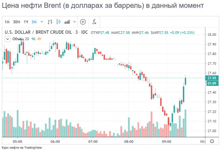По данным "RT на русском", майские фьючерсы на нефть WTI рухнули на 19,21 процента, составив 14,76 доллара за баррель. Ранее нефть марки WTI падала более чем на 20 процентов до 14,4 доллара, что стало минимумом с 1999 года.