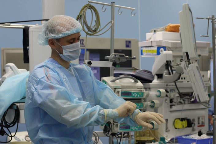 Подготовка и введение наркоза – совсем не механический процесс. Это искусство, требующее как точных знаний, так и внутреннего чувства меры, добавляет заведующий отделением анестезиологии, реанимации и интенсивной терапии Президентской клиники Бауржан Бабашев: