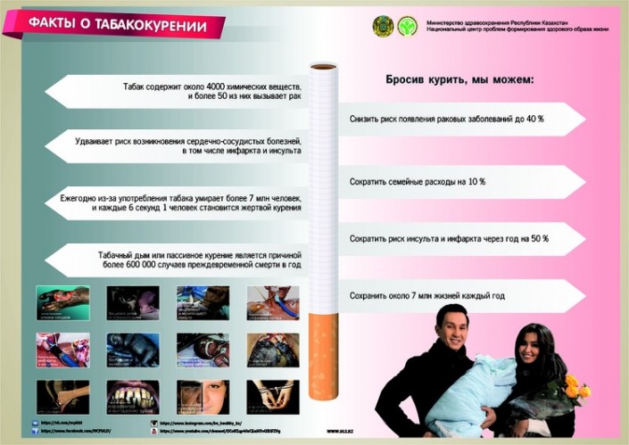 15 ноября международная общественность отмечает День отказа от курения. Согласно данным Всемирной организации здравоохранения, в странах со средним и низким уровнем доходов проживает до 80 процентов людей, употребляющих табачные изделия. Ежегодно почти 6 миллионов смертельных исходов случаются по вине табака, что делает его употребление одной из самых значимых угроз здоровью населения во всем мире, включая Казахстан. На сегодняшний день в нашей стране создаются необходимые условия для успешной борьбы с табакокурением, однако очень многое зависит от активной позиции каждого члена общества.