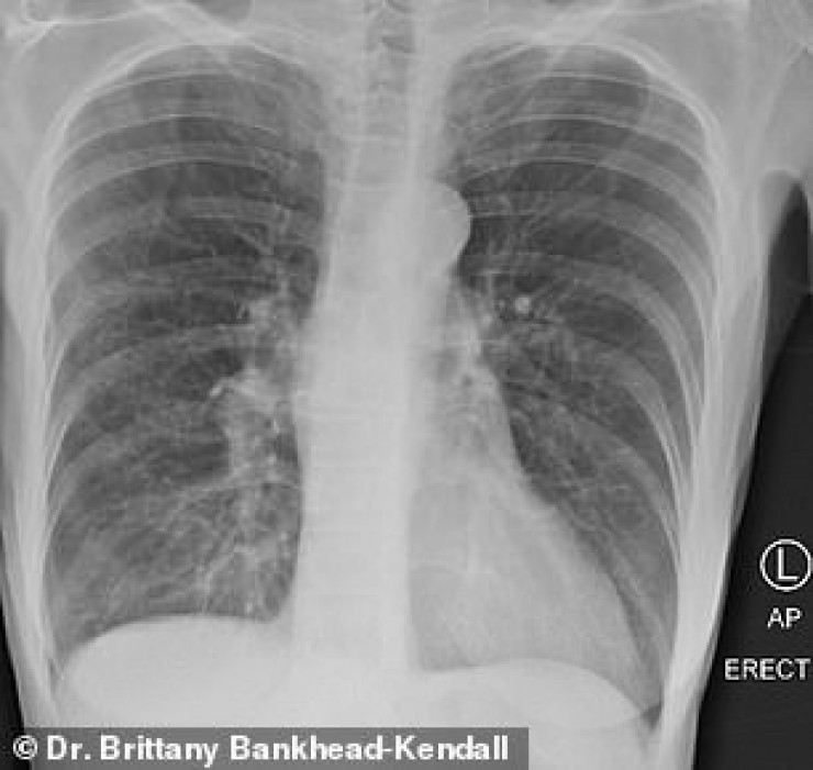 Доцент Центра медицинских наук Техасского технологического университета, доктор Бриттани Бэнкхед-Кендалл показала три рентгеновских снимка легких: здорового человека, курильщика и пациента с коронавирусом.