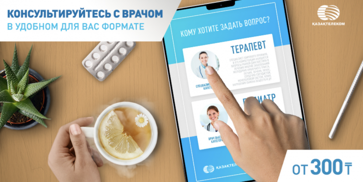 "Казахтелеком" вывел сервис "Онлайн-медицина" на рынок в мае 2020 года. Актуальность продукта не вызывала сомнений, в разгар борьбы с коронавирусом казахстанцы испытывали затруднения с получением консультаций по остальным заболеваниям. Проблема была решена за счет создания интерактивной площадки, на которой абонент в любое удобное для себя время может в течение 30 минут обсудить с опытным терапевтом состояние своего здоровья либо получить консультацию квалифицированного педиатра по поводу заболевания своего ребенка.