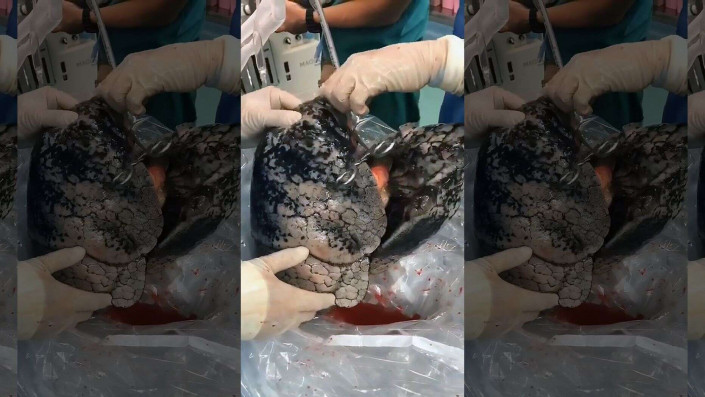 Хирурги-трансплантологи из клиники в китайской провинции Цзянсу показали, как выглядят легкие курильщика с 30-летним стажем, передает Fox News.