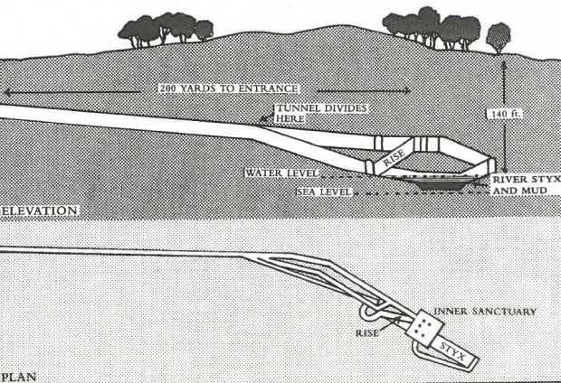 Более 2000 лет назад храм Байи в Риме был очень популярным местом, известным своими минералами, предположительно дающими бессмертие, и тем, что в нем, возможно, находился вход в Аид. Теперь же от него остались лишь таинственные руины. В 60-х годах Роберт Пейджет и Кит Джонс решили исследовать эти руины. С трудом протиснувшись через узкое отверстие, они оказались в узком туннеле, в котором пахло вулканическим газом. Пейдж обнаружил, что начало туннельного комплекса указывало на восход, а сами туннели идут в основном с востока за запад. Это позволило предположить, что ритуалы были важным фактором при строительстве туннелей. Исследователи нашли множество ниш, предназначенных для установки светильников вдоль стен туннелей. Также они обнаружили то, что, казалось, было системой вентиляции туннелей. А когда они дошли до конца одного из туннелей, на свет появилась настоящая загадка. Сразу за резким поворотом бежал поток кипящей воды. Камни, которые ученые бросали в эту воду, казалось, просто исчезают в темноте. Мужчины решили, что если мифический вход в Аид на самом деле существует, то они, вероятно, только что нашли его.
