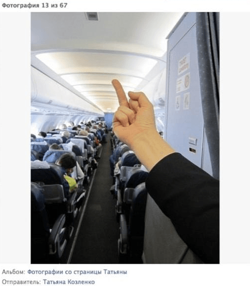 В январе 2013 года стюардесса "Аэрофлота" Татьяна Козленко была уволена за неподобающее отношение к пассажирам. Блогеры обратили внимание на оскорбительную фотографию, опубликованную девушкой еще в 2011 году, после чего авиакомпания заявила, что бортпроводница у них больше не работает.