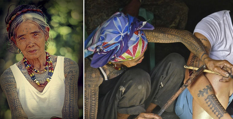 Набивание татуировки с помощью бамбуковой палочки популярно в Азии по сей день. Но если в Таиланде к нему прибегают буддийские монахи, на Филиппинах единственной носительницей традиции является старушка Ванг-Од из племени охотников за человеческими головами. Вместе со своей внучкой она делает татуировки, которые еще в начале века могли носить только воины-убийцы племени калинга.