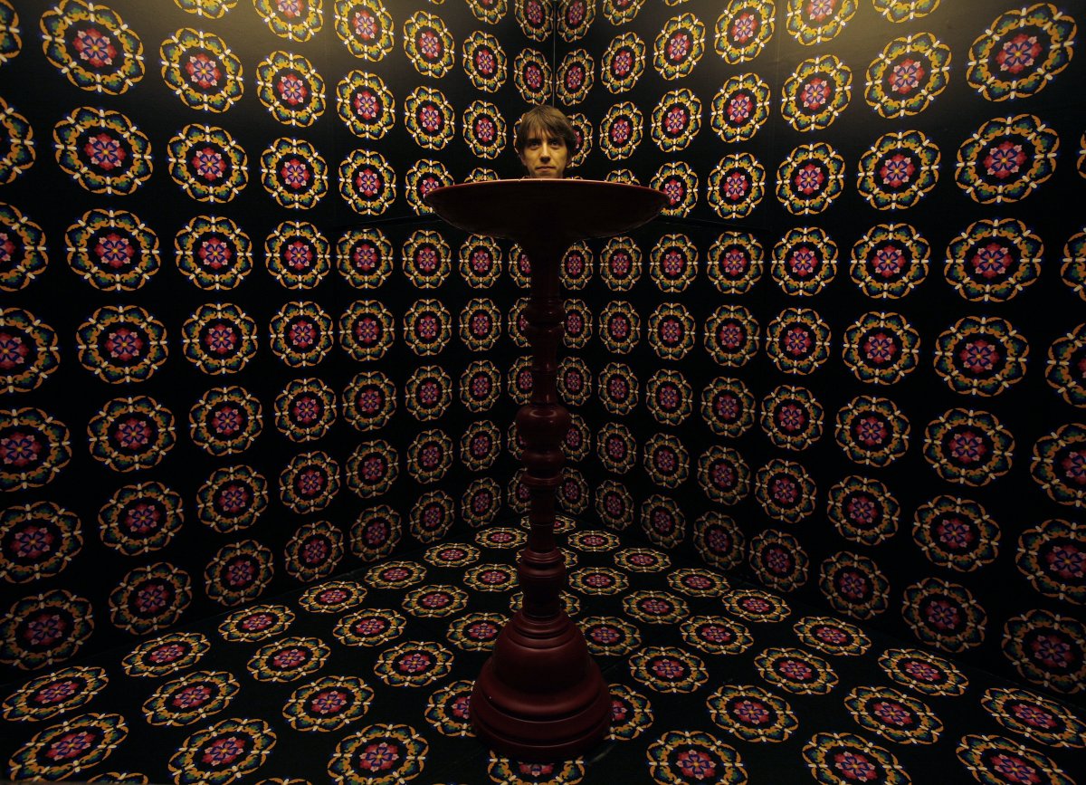 Тело этого человека как будто пропало, но на самом деле он находится между "Зеркалами невидимости" на выставке в Научном музее Гонконга.