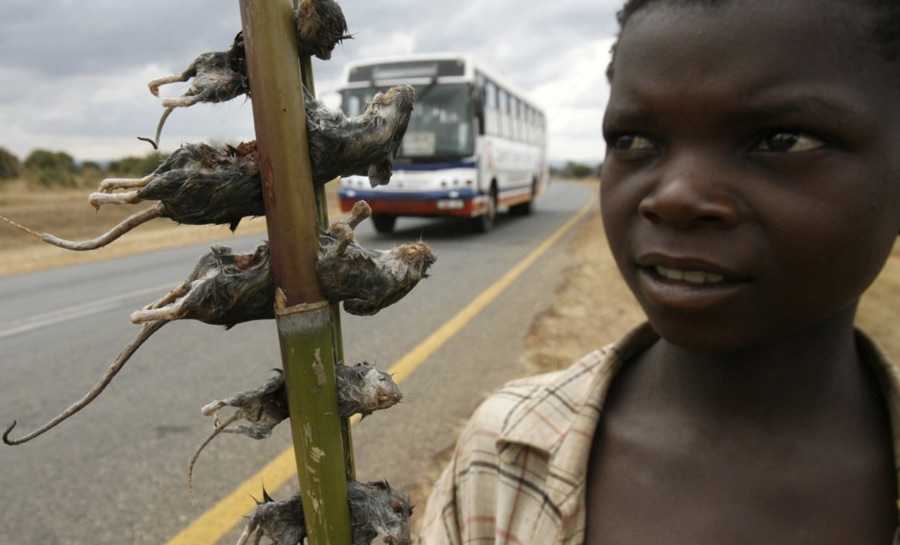 В Малави в пищу употребляют вареных крыс. Приобрести их можно прямо на обочине дороги.