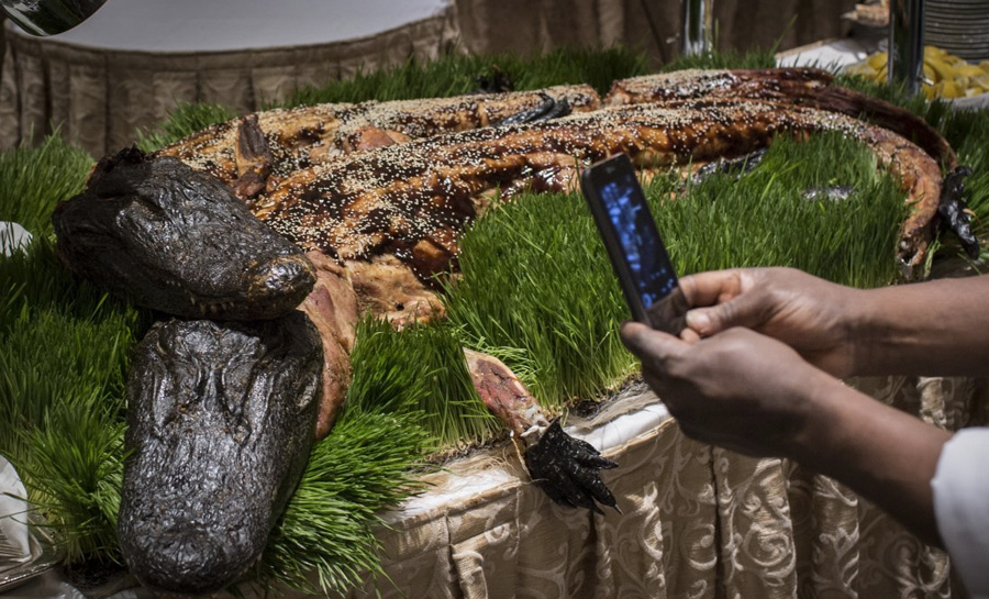 Для ежегодного ужина Клуба исследователей готовят множество различных деликатесов. На последнем мероприятии, прошедшем в отеле Waldorf Astoria в Нью-Йорке, главным блюдом меню были аллигаторы, приготовленные целиком.