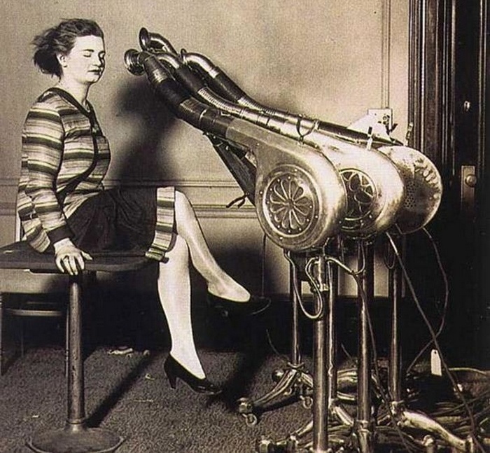 Подобные гигантские фены использовались для быстрой сушки волос в 1920-е годы.