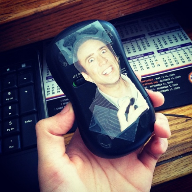 Предварительно заклейте сенсор мыши куском бумаги и скотча.