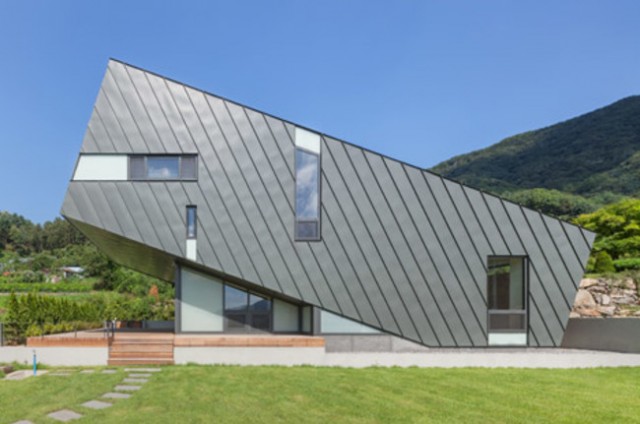 Такой наклонный дом расположен на холмах неподалеку от озера Чанпенг. Проектировавшие архитекторы решили наклонить постройку в стремлении увеличить объем проникающего через южные окна солнечного света.