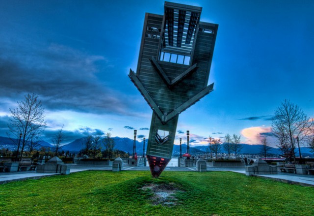 Высотой около 8 метров, заключенная в алюминиевую раму и отделанная красным стеклом "церковь" нашла свое место посреди парка в Калгари, Альберта. Американский скульптор Деннис Оппенгейм описывает свой проект так: "Переворот церкви с ног на голову имеет несколько агрессивное, но не богохульное настроение", однако согласны с мастером оказались не все.