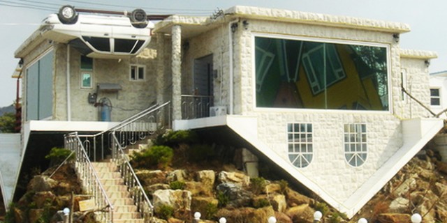 Этот любопытный дом был построен бывшим дизайнером одежды, 51-летним Чон Юн-Суном, который и поселился в своем детище. "На деле оказалось не так много разницы между проектированием одежды и домов", - поделился создатель необычного здания. Может быть, именно по этой причине в его творении и были перепутаны пол с потолком.
