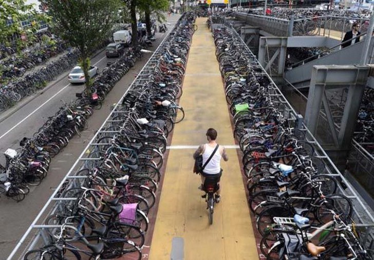 В Нидерландах дети обязаны проходить письменный тест и практическую демонстрацию езды на велосипеде в возрасте около 10 лет. Это означает, что к тому времени, как они станут взрослыми, более 30 процентов из них будут использовать велосипед в качестве основного вида транспорта. Центральный железнодорожный вокзал в городе Гронинген имеет парковку на 10 000 велосипедов. Эта мера привела к резкому снижению использования легковых автомобилей, уровня пробок и загрязнения окружающей среды.