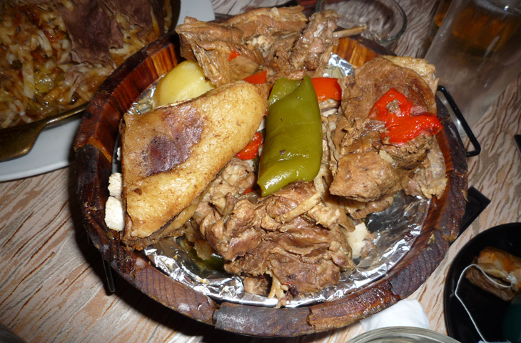 Монголы не признают жареного мяса, поэтому их вариант барбекю базируется на традиционном тушении. В казан кладется баранина, овощи и - гвоздь программы - камни, которые в процессе варки покрываются черным глянцевым налетом. Традиция требует, чтобы охлажденные камни были отданы гостям, а те натерли ими руки - монголы верят, что налет обладает целебным эффектом.