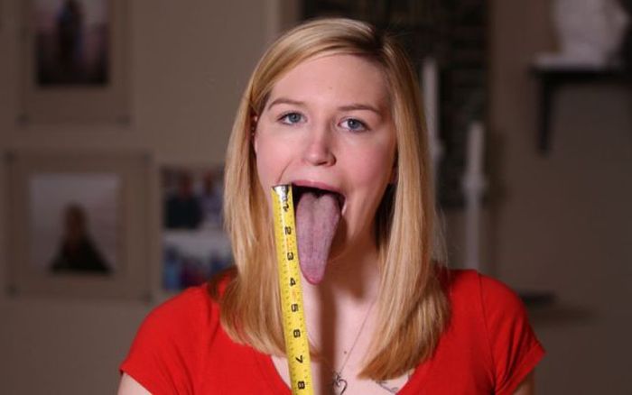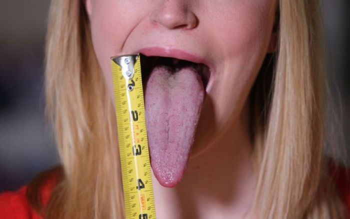 Эта часть тела девушки превышает невероятных 10 сантиметров (4 дюйма), предоставляя ей уникальную возможность полизать не только свой нос, подбородок и локоть, но и глаза.