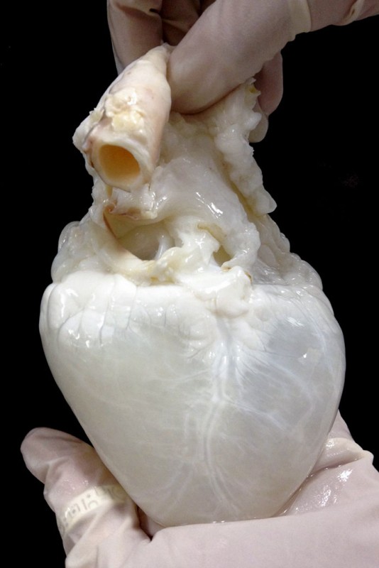 Мы привыкли представлять сердце красным. Оно становится прозрачным, если очистить все кровеносные сосуды. Такой донорский орган предназначен для трансплантации.