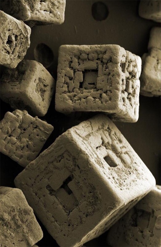 Так выглядят зерна соли под микроскопом. Они имеют кубическую форму.