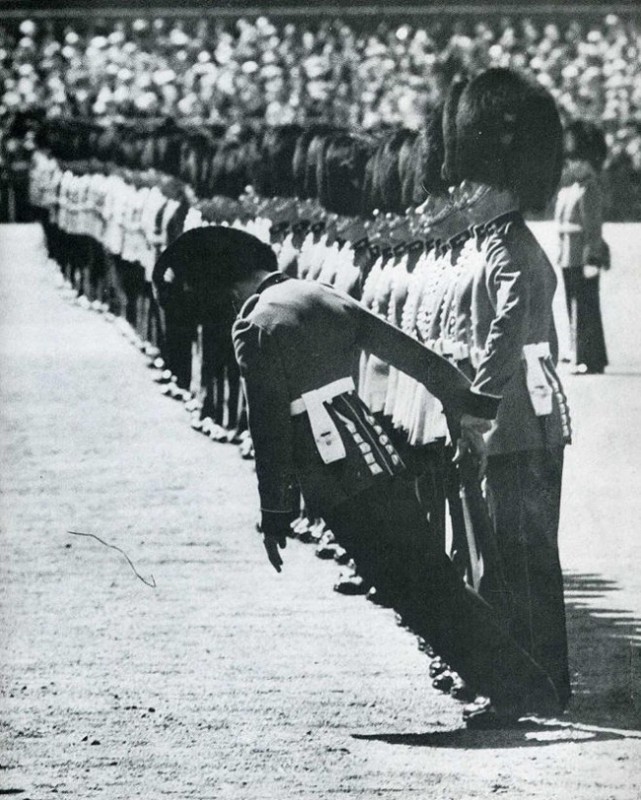 Гвардеец демонстрирует, что даже если он упадет, британские солдаты не обратят на это никакого внимания.
