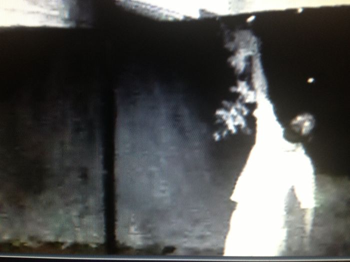 Это был всего лишь курьер. Он пытался веткой снять с крыши бумажный пакет, который он неудачно закинул во двор. Со стороны это выглядело устрашающе.