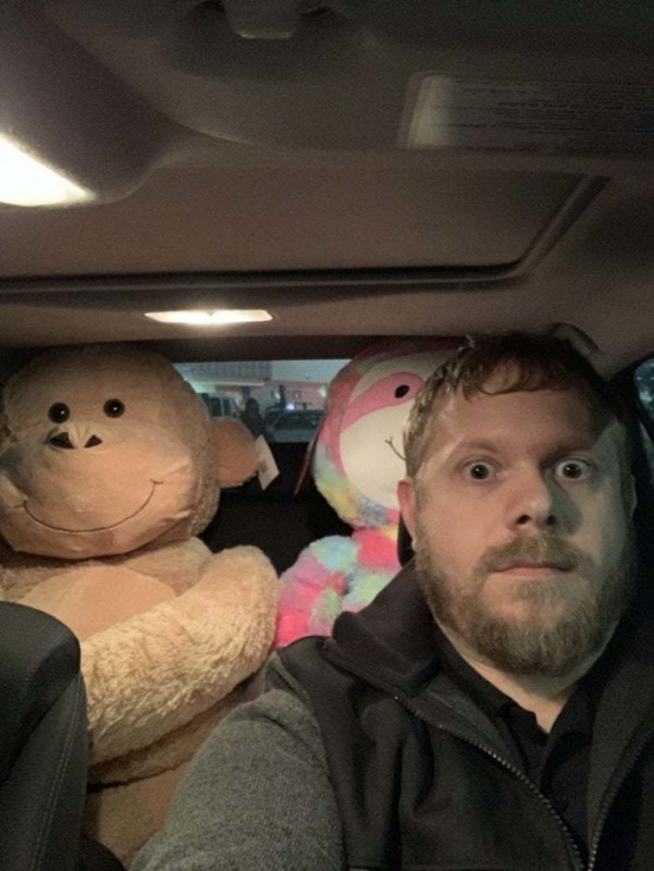 #17 "Я был спокоен, пока не посмотрел в зеркало заднего вида. Это жена приготовила подарки детям!"