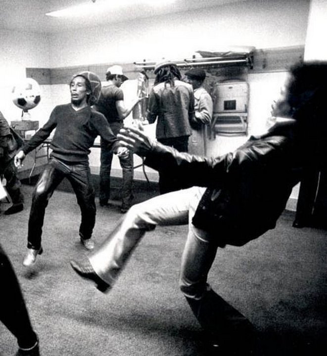 Боб Марли играет в футбол перед концертом.