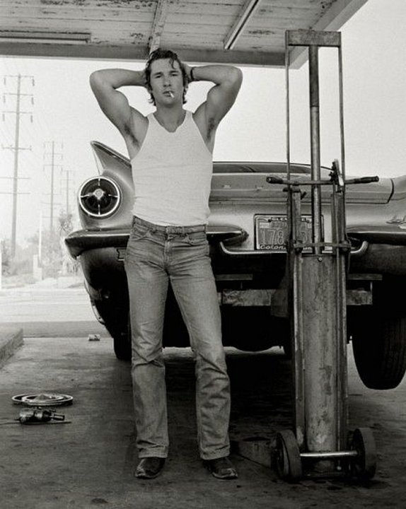 Ричард Гир, 1978 год. Фотограф Херб Ритц сделал этот портрет своего близкого друга, начинающего и никому неизвестного тогда актера - Ричарда Гира. Снимок был сделан в Калифорнии, когда у их автомобиля прокололось колесо, и они заехали в придорожный сервис с целью его поменять.