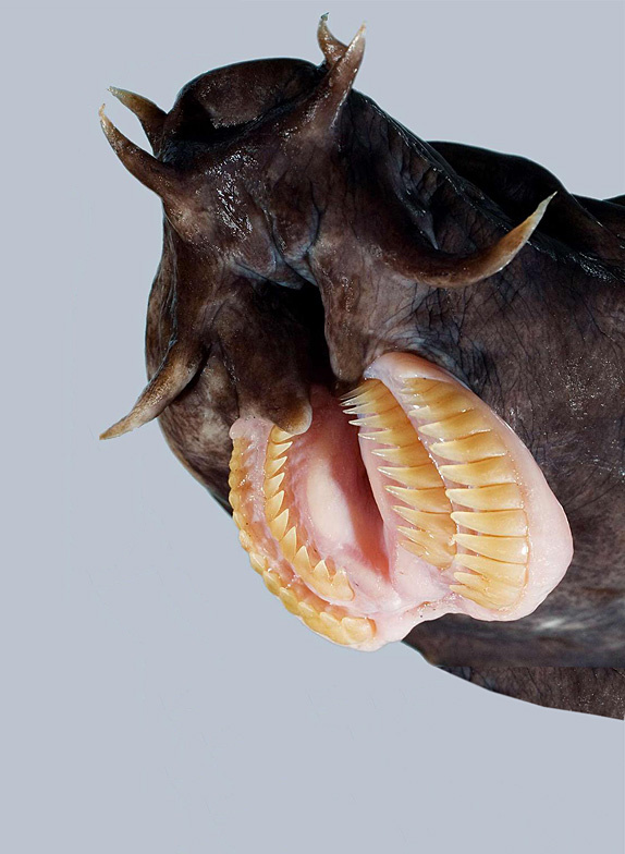 Единственное животное на планете, у которого на языке два ряда зубов, - водяные черви миксины. Эти сердцееды с вульгарной красотой вырастают до 70 сантиметров и выедают внутренности у рыб (да, и сердце в том числе).