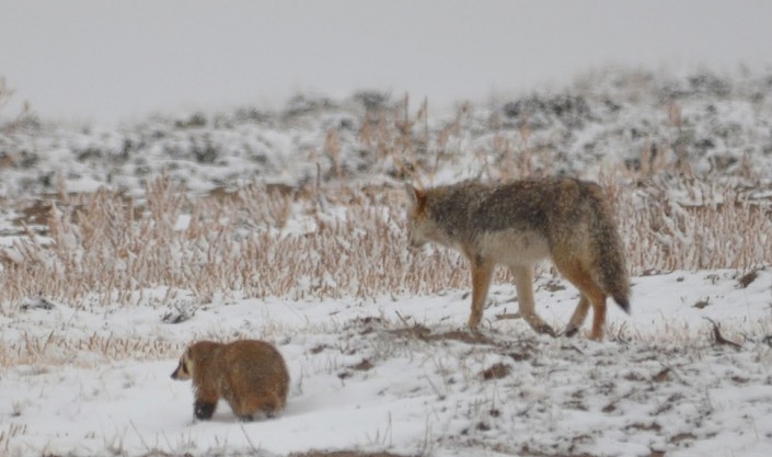 Койоты и американские барсуки - большие любители вместе поохотиться. Их цель - нажористые луговые собачки, которые, издали завидев смертоносную парочку, забиваются в норы. Барсук забивается следом и выгоняет собачку прямо на койота. Собачке конец.