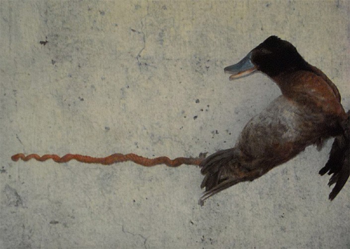 Вообще у птиц нет пениса (да-да, даже у самцов!). Они размножаются так: самец плотно прижимает свою клоаку к клоаке самки и впрыскивает в нее порцию спермы. Исключение - аргентинская савка.